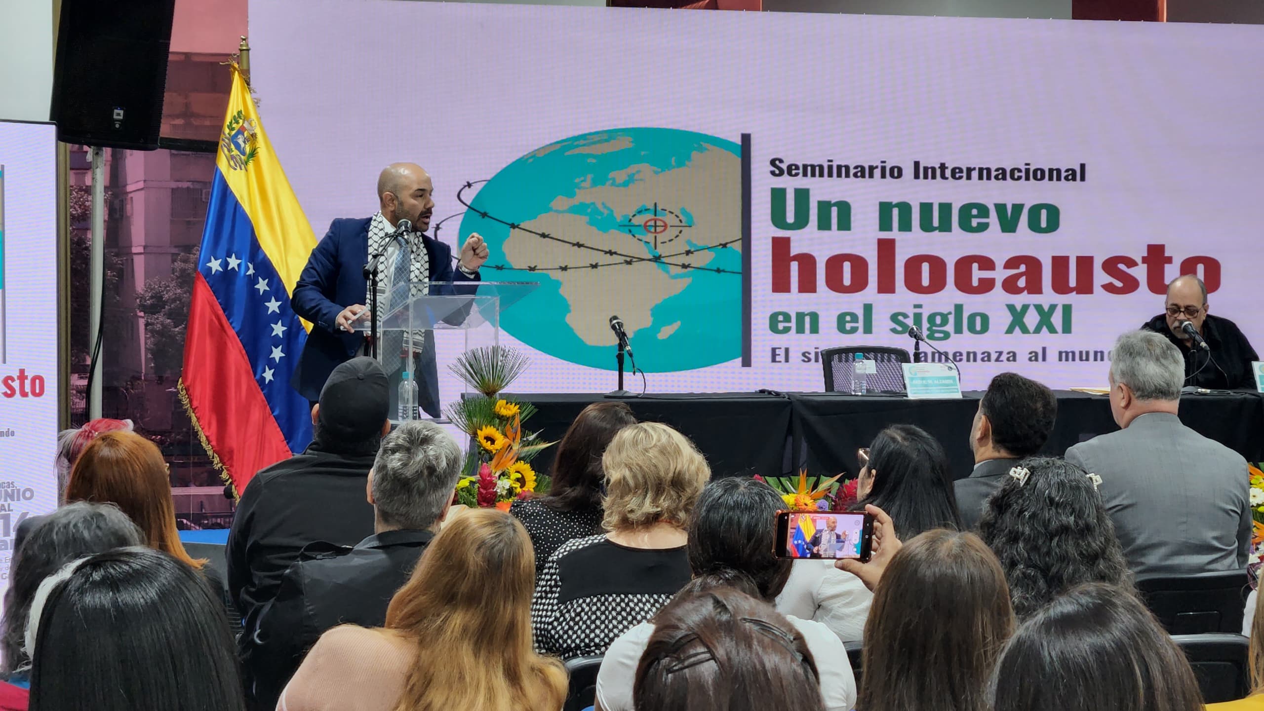 Al intervenir en el seminario internacional “Un nuevo holocausto en el siglo XXI, el sionismo amenaza al mundo”, organizado por el Centro de Estudios Latinoamericanos y del Caribe Rómulo Gallegos (Celarg), el diplomático recordó que pasaron más de siete décadas y todavía esperan por una solución.