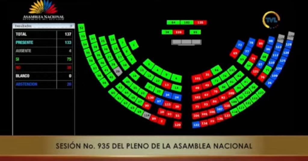 Para ello, se necesitaban 92 votos a favor y solo hubo 41 por parte de la bancada oficialista Acción Democrática Nacional (ADN), mientras que el movimiento Revolución Ciudadana y del Partido Social Cristiano (PSC) dieron 74 votos en contra.