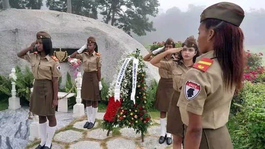 En la ceremonia participaron alumnas del escuela militar Camilo Cienfuegos y las flores enviadas por el líder cubano Raúl Castro las colocó el Héroe del Trabajo de la República de Cuba, Primer Coronel Alberto Vásquez, compañero de lucha del General de Ejército y de Vilma.