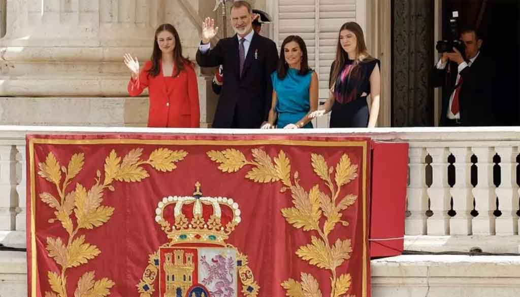“Hoy me reafirmo con entusiasmo y determinación en aquel compromiso que ha permeado cada gesto y cada palabra en la década transcurrida’, valoró Felipe VI refiriéndose al compromiso que hizo al asumir la corona hace 10 años. ‘A la Constitución y a sus valores me he ceñido –y me ceñiré siempre– en el cumplimiento de mis responsabilidades. Son guía para el ejercicio de mis funciones’, puntualizó en un almuerzo junto a la reina Letizia y sus dos hijas, la princesa de Asturias, Leonor, su sucesora, y la Infanta Sofía.