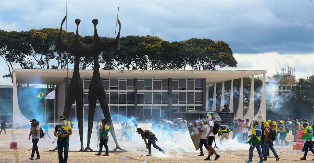 Adeptos radicales del exmandatario Jair Bolsonaro (2019-2022) invadieron y depredaron el 8 de enero de 2023 las sedes capitalinas del Congreso Nacional, el Supremo Tribunal Federal y el Palacio Presidencial, bajo gritos de intervención militar y en rechazo a la asunción al poder del presidente Luiz Inácio Lula da Silva.