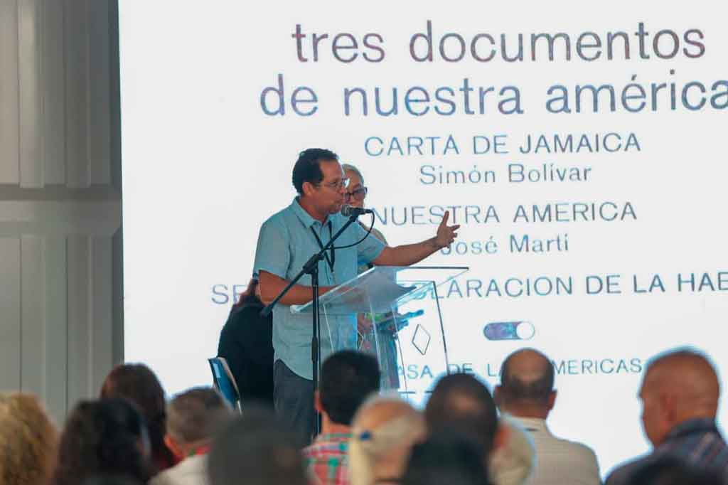 En la jornada final de la cita, que sesionó por cinco días con delegados nacionales e internacionales, el cubano René González Barrios, presidente del Centro Fidel Castro Ruz, disertó sobre el ideario bolivariano del líder histórico de la Revolución cubana y Hugo Chávez.