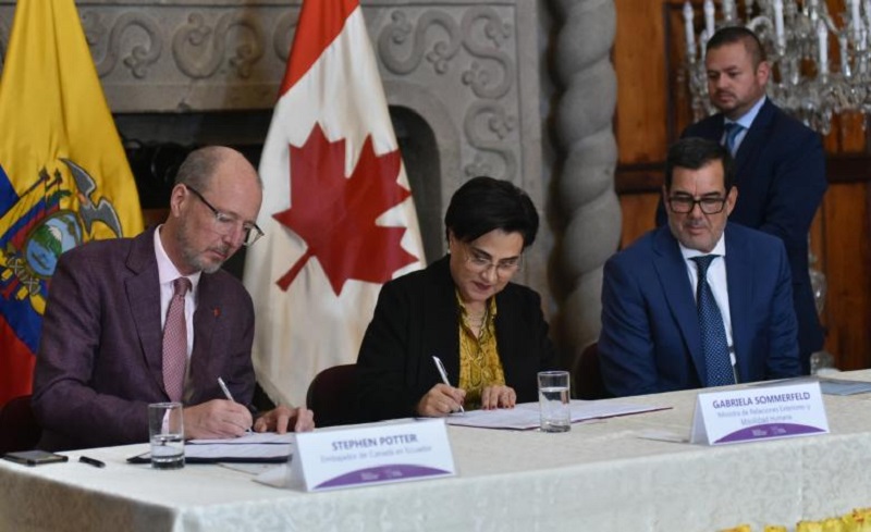 El documento fue suscrito en esta capital por la canciller ecuatoriana, Gabriela Sommerfeld y su par canadiense, Stephen Potter.