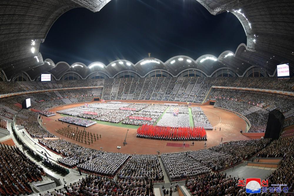 Al celebrado en el capitalino Estadio Primero de Mayo, uno de los mayores del mundo, asistieron más de 100 mil trabajadores, jóvenes y estudiantes, así como miembros del cuerpo diplomático y un grupo de coreanos residentes en ultramar que visitan la tierra natal.