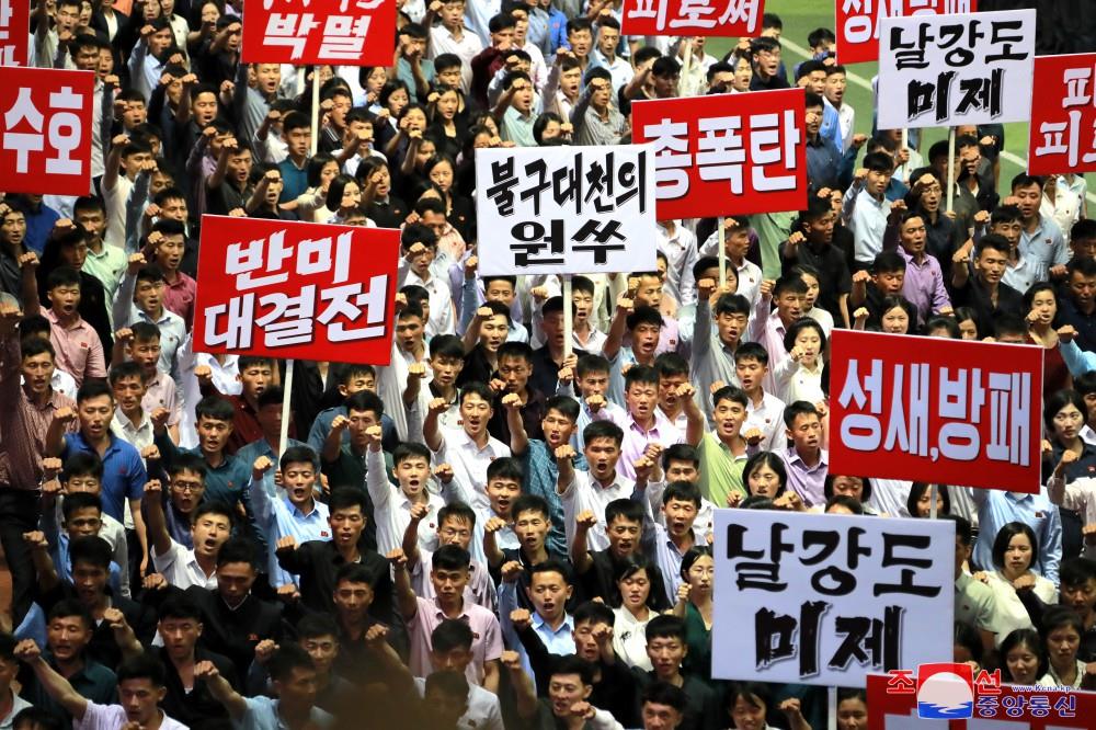 Varios oradores recordaron las atrocidades cometidas por las tropas de Estados Unidos y sus aliados durante la Guerra de Corea (1950-1950) -se exhibió un documental al respecto- y se sumaron a los sentimientos expresados durante estos días en los llamados Actos de Juramento de Venganza.