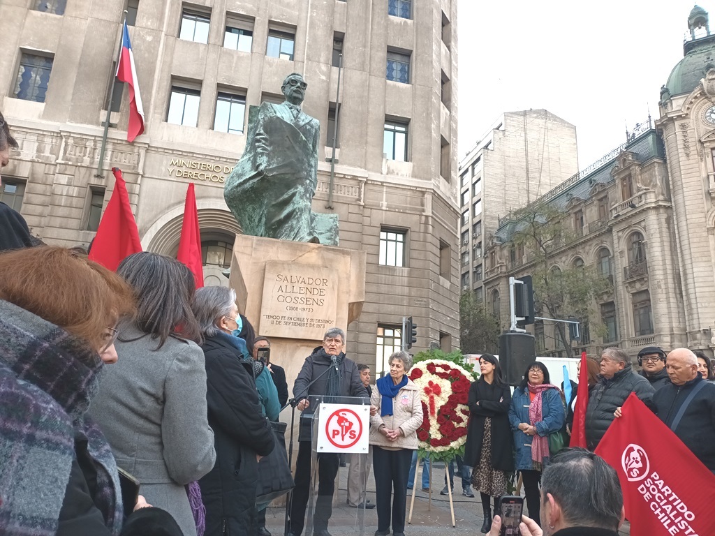 Representantes de los Partidos Comunista y Socialista, así como de organizaciones sociales y sindicales se concentraron este miércoles frente al monumento a Allende, en la Plaza de la Constitución, para rendirle homenaje.