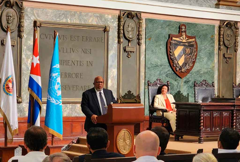 La Habana, 28 jun (Prensa Latina) El presidente de la Asamblea General de las Naciones Unidas (AGNU), Dennis Francis, recibió hoy la Placa Aniversario 295 de la Universidad de La Habana, en cuya Aula Magna dictó una conferencia magistral.