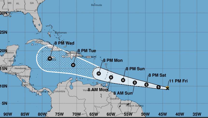 El Centro Nacional de Huracanes afirmó en su boletín de las 17.00 hora local que Beryl se encontraba a mil 160 kilómetros de Barbados (que ya emitió aviso de huracán para la isla) y se mueve a 355 kilómetros por hora.