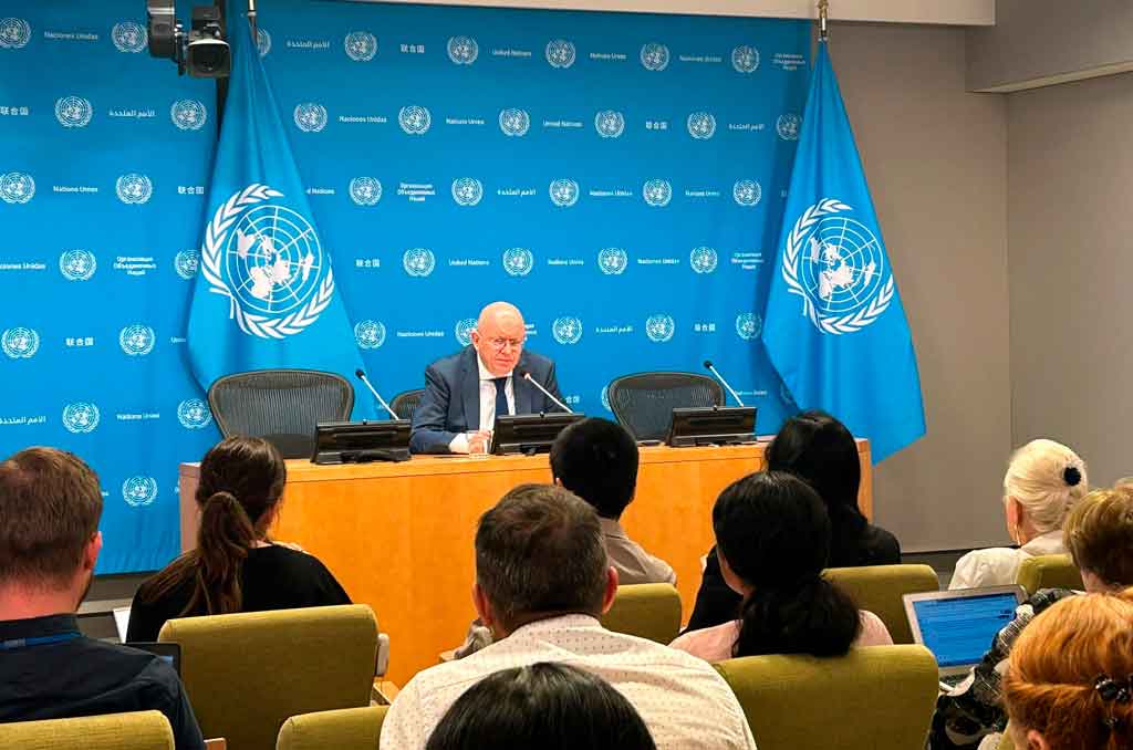 Al presentar ante la prensa el programa de trabajo de Rusia al frente del Consejo de Seguridad en el mes de julio, el representante consideró además insuficiente el proyecto de paz propuesto por el presidente ucraniano, Volodímir Zelenski.