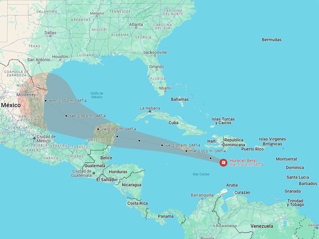 Según el aviso de ciclón tropical número siete del Instituto de Meteorología de Cuba (Insmet), Beryl se desplaza a razón de 35 kilómetros por hora y su presión mínima descendió hasta 943 hectopascales.