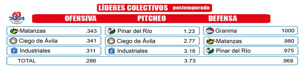 Matanzas lidera la ofensiva (.343) y Granma la defensa al mantener inmaculado su casillero de errores y hoy se enfrentarán a las 18.30, hora local, en el estadio Victoria de Girón, en una serie que marcha favorable a los matanceros tres partidos por uno.