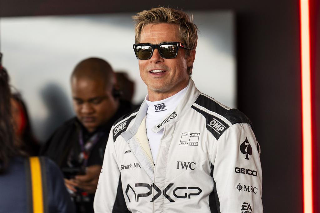 Pitt apareció vistiendo el traje de carreras del equipo ficticio «APX GP» que integra en el film a cargo de Apple, y que recién estrena nombre y póster, y este domingo descubrirá su primer teaser.