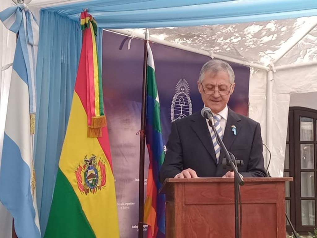 Ante una amplia representación del cuerpo diplomático acreditado, legisladores nacionales, departamentales, municipales; artistas e intelectuales, otros invitados y representantes de la comunidad de argentinos residentes en Bolivia, el embajador enfatizó en los nexos históricos entre los dos países.