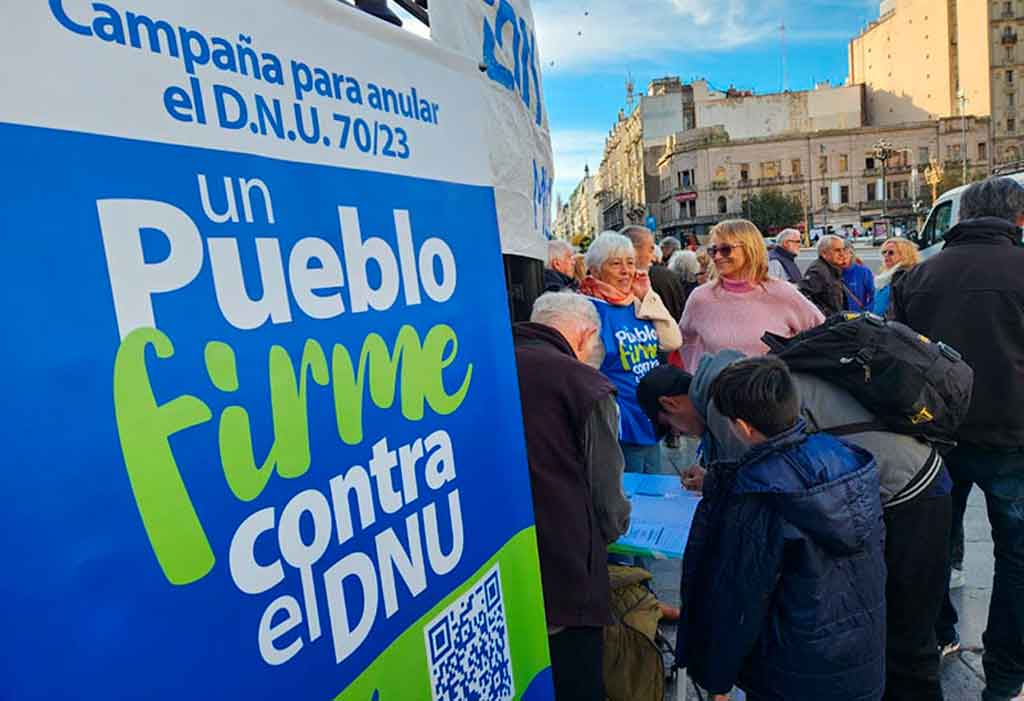 Bajo el lema Un pueblo firme contra el DNU, la iniciativa reúne firmas contra ese recurso con el objetivo de lograr su anulación por la Cámara de Diputados y la Corte Suprema.