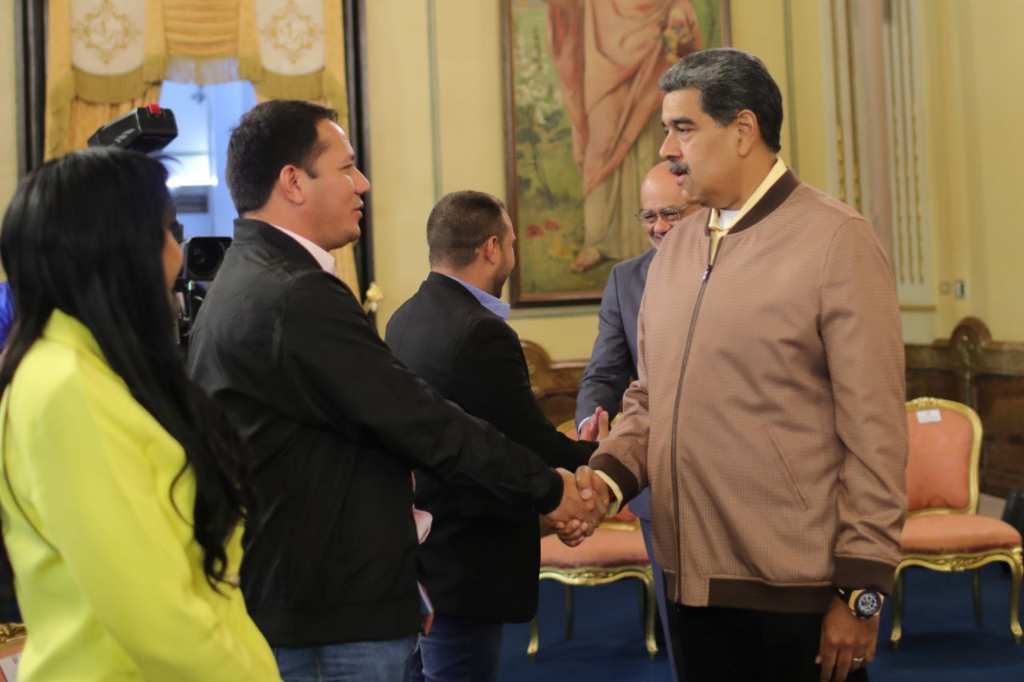La reunión tuvo por objetivo conformar un Frente Nacional por la paz y contra el odio, y acudieron además al Palacio de Miraflores, sede del Gobierno, el titular de la Asamblea Nacional (Parlamento) Jorge Rodríguez y la primera combatiente y diputada Cilia Flores.