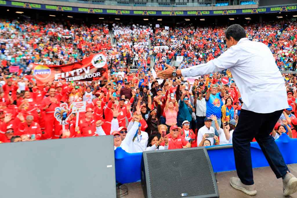 “Les pido el voto, su amor”, manifestó el jefe de Estado ante miles de trabajadores que asistieron a una asamblea en apoyo a su candidatura en el Estado Monumental Simón Bolívar de Caracas.