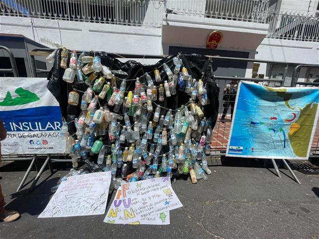 La organización ambiental Ecoagents lideró la protesta en rechazo a los desechos plásticos que, principalmente entre los meses de julio y octubre, dejan los navíos que operan en el Pacífico sur y afectan el entorno marino de las Galápagos, Patrimonio Natural de la Humanidad.