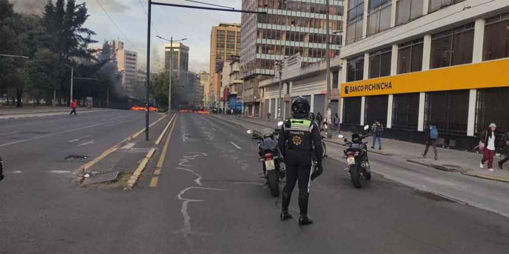 En esta capital, miembros de la Unión Nacional de Educadores (UNE), del Frente Unitario de Trabajadores (FUT), del Frente Popular y la Federación de Estudiantes Universitarios de Ecuador cerraron las calles y quemaron neumáticos con el lema ¡Sube la gasolina, sube todo!.