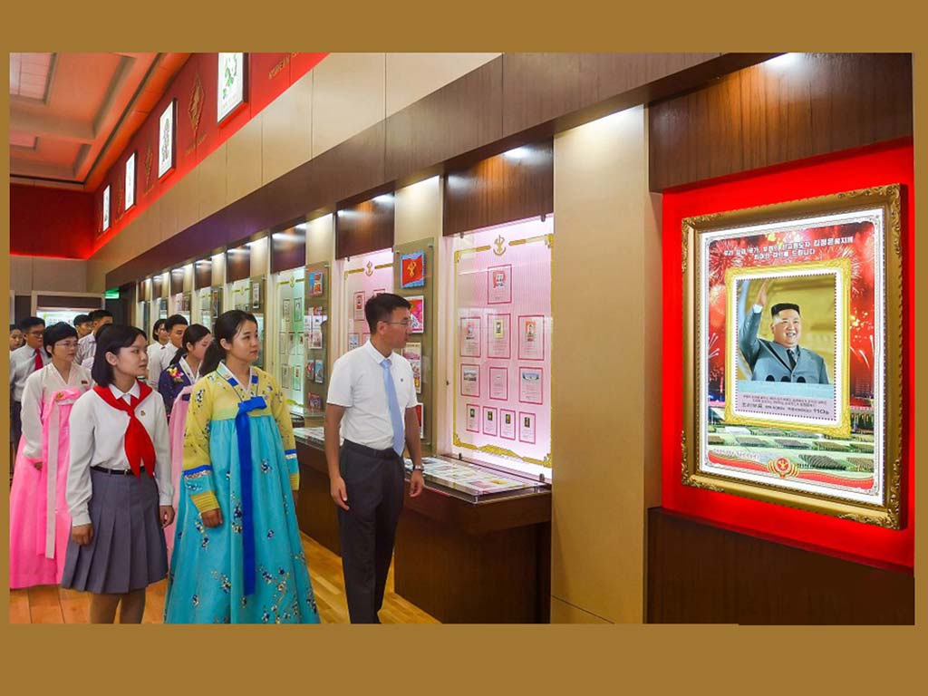 Varias estampillas reflejan las grandes contribuciones de Kim Il Sung, Kim Jong Il y Kim Jong Un a la defensa de la patria y la preservación de las conquistas populares.