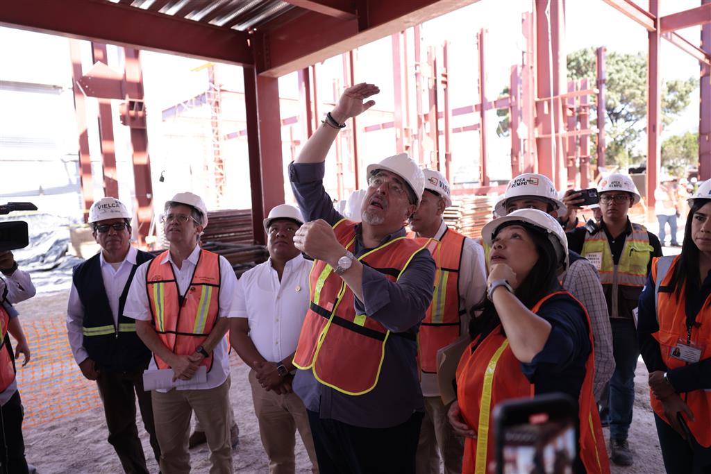 Va a duplicar el número de camas con referencia al centro de salud anterior, agregó Arévalo, y se mostró complacido porque la construcción avanza con altos estándares de calidad y contará con áreas de suma importancia.