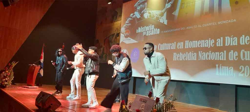 El homenaje al Día de la Rebeldía Nacional incluyó un programa artístico con la participación por Cuba de David Calzado y La Charanga Habanera y el intérprete cubano Alejandro Benítez, y por Perú de un grupo de danzas locales, un elenco de jóvenes que bailaron la rueda de casino cubana, y el trovador Rudy Rivera.