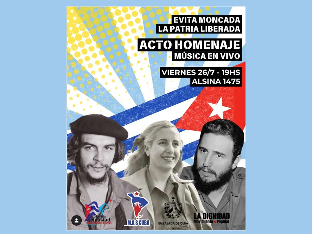 El acto será una oportunidad para conmemorar el aniversario 71 de los asaltos a los cuarteles Moncada y Carlos Manuel de Céspedes, en Cuba, y el 72 de la muerte de Eva Duarte de Perón (1919-1952), la Abanderada de los Humildes y Jefa Espiritual de Argentina.