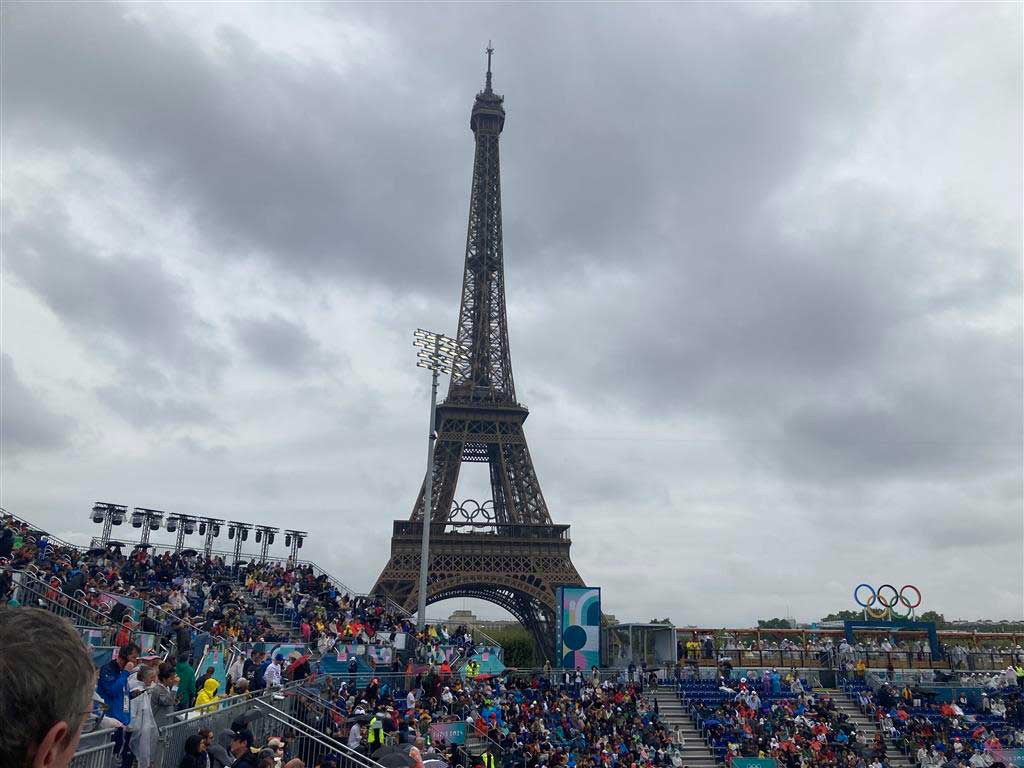 En plenos Campos de Marte y el telón de fondo de la Torre Eiffel, el voley de playa promete convertirse en uno de los deportes mas populares de los Juegos Olímpicos de Verano.