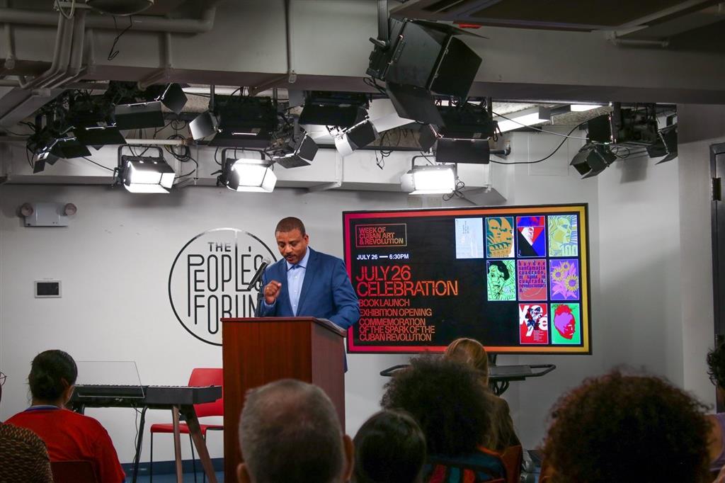 La cita acogió a activistas solidarios del proyecto The People’s Forum y representantes de la Misión Cubana ante Naciones Unidas, entre ellos el embajador permanente alterno ante el organismo Yuri Gala.