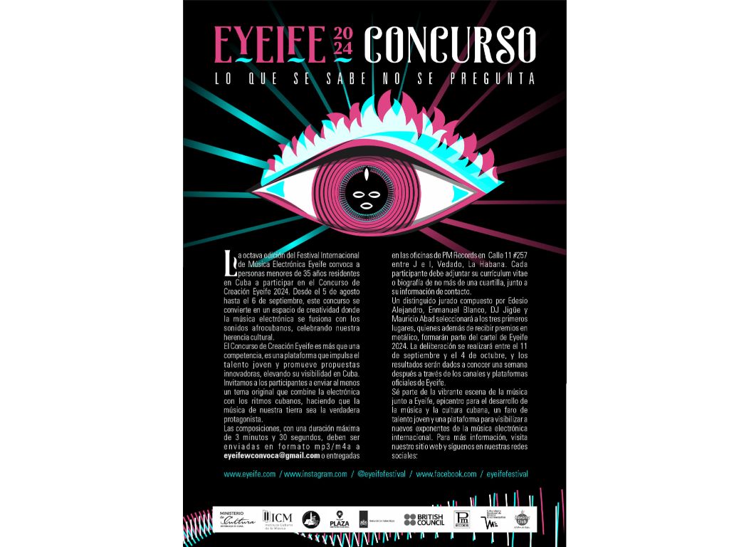 Los interesados podrán enviar al menos un tema original que combine música electrónica y ritmos cubanos, con énfasis en las sonoridades de la tierra caribeña. Las composiciones, de una duración máxima de 3 minutos y 30 segundos, deben enviarse en formato mp3/m4a a eyeifewconvoca@gmail.com o entregarse en las oficinas de PM Records, situadas en Calle 11 #257 entre J e I, Vedado, La Habana.