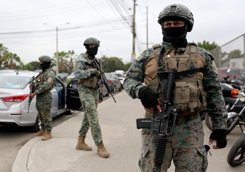 En Ecuador, siete provincias, incluida Guayas, se encuentran bajo estado de excepción y, además, rige desde enero la declaratoria de conflicto armado interno, una disposición con la cual el presidente Noboa busca frenar la inseguridad y el crimen organizado.
