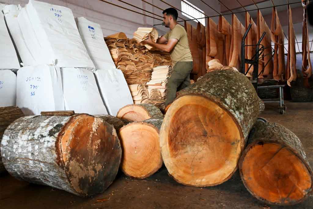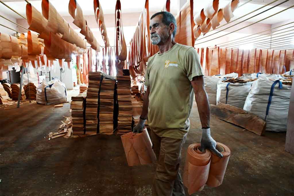 El aroma cálido y con notas dulces del cedro invade el local, ubicado en el municipio tabacalero de Cabaiguán, 380 kilómetros al este de La Habana. Largos pliegos de madera cuelgan en tendederos esperando secarse para la confección de las láminas.