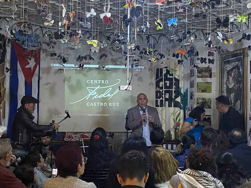 El ministro consejero de la Embajada de Cuba en Colombia Rogelio Martínez compartió con los presentes pasajes de la vida y obra de Fidel, que lo llevaron a convertirse en el guía de todos los cubanos y en un referente para las mayorías sometidas.