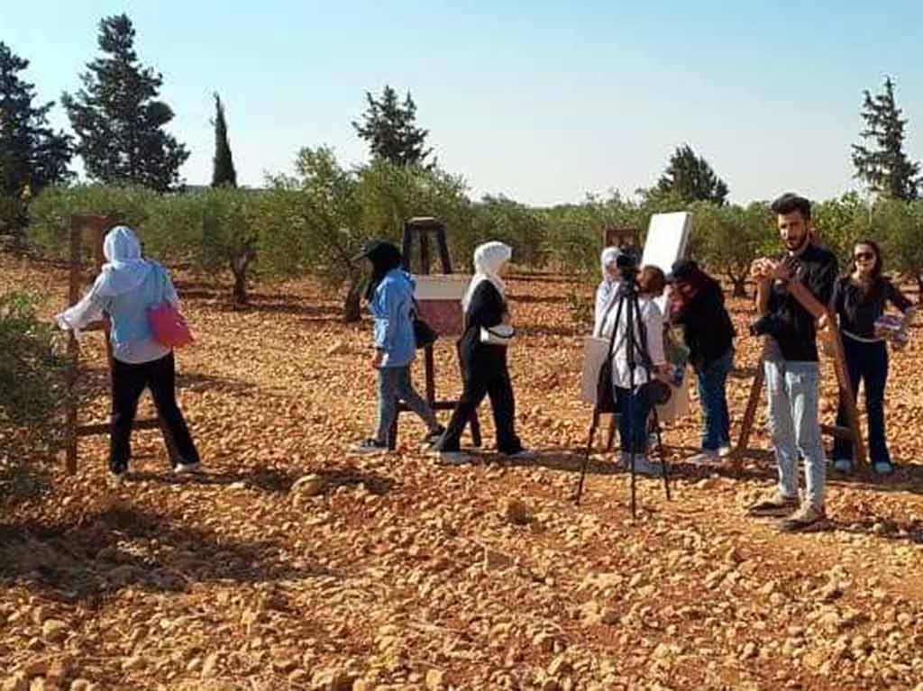 Los participantes en el evento patrocinado por el Fondo Sirio de Fomento, el Ayuntamiento de Alepo y la Unión de Bellas Artes, compartieron con los agricultores la recolección de pistacho y la siembra de cientos árboles, mientras pintores se instalaron en los campos para dibujar a los agricultores y los rituales asociados a este cultivo.