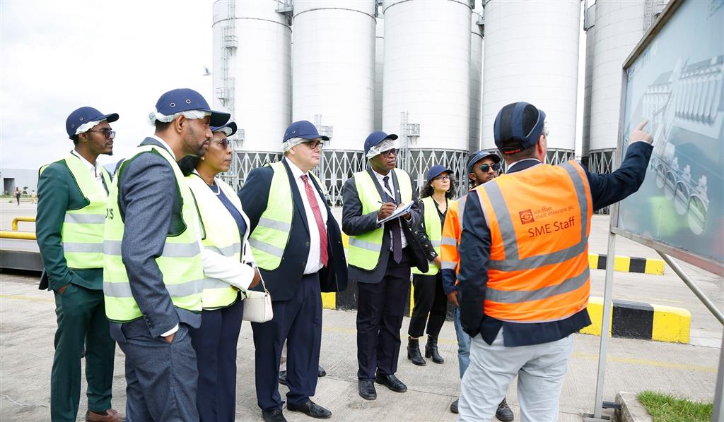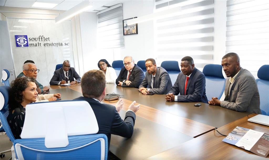 La víspera, el directivo de la FAO presenció el proceso productivo de Soufflet Malt Etiopía S.C., fabricante de malta para cerveza, y otros fabricantes textiles ubicados dentro del parque.