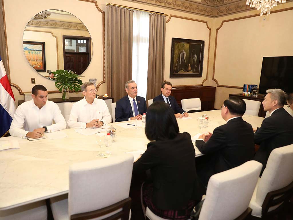 Abinader también se reunió este jueves con el ministro de Industria y Tecnología Informática de China, Jin Zhuanglong, en el Salón Privado del Palacio Nacional, informó la dirección de prensa del Presidente.