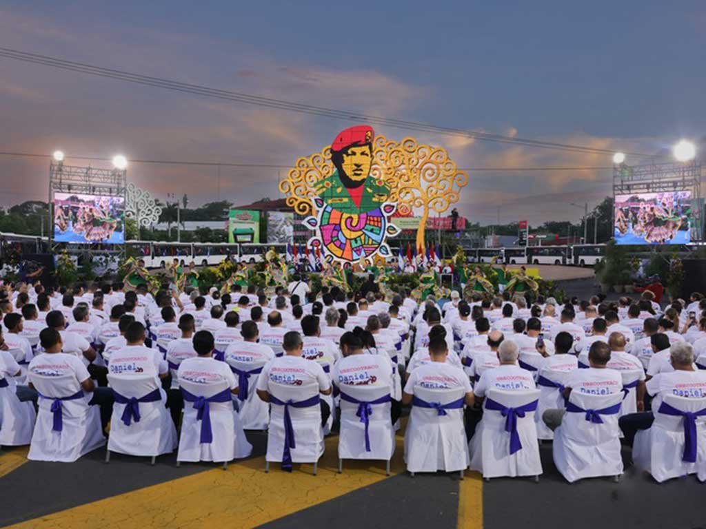 El acto de entrega de las nuevas unidades de transporte se realizó en conmemoración del aniversario 46 de la toma del Palacio Nacional realizada en 1978 por un grupo de 25 combatientes del comando guerrillero Rigoberto López Pérez, acción conocida como muerte al somocismo.