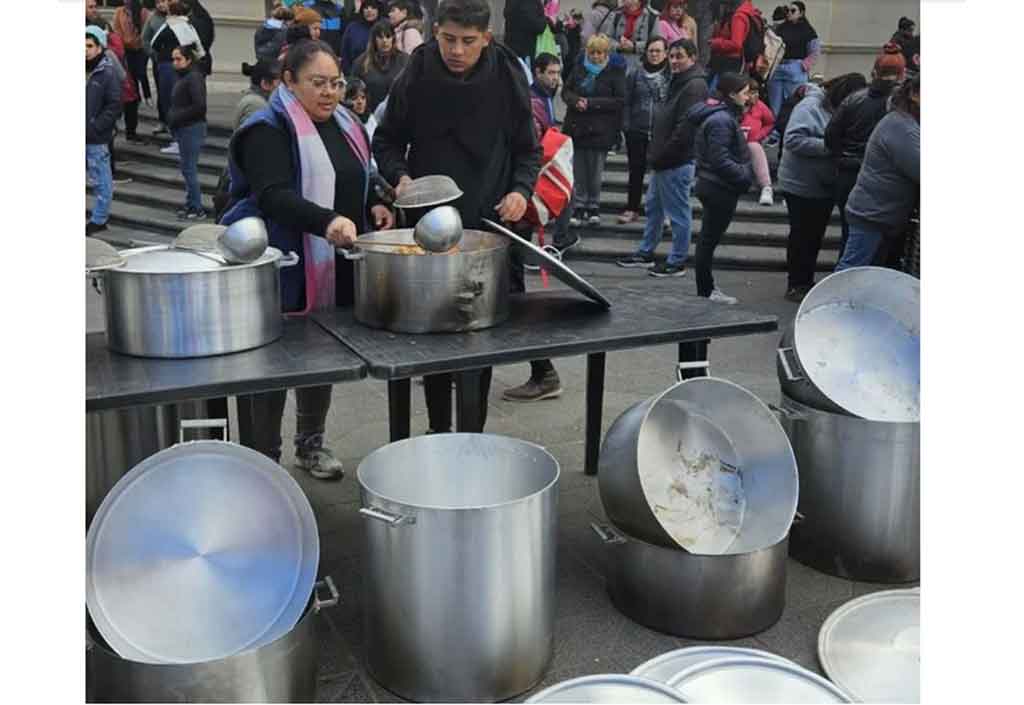 Bajo el lema 100 ollas contra el hambre, los manifestantes llegaron hasta la intersección entre la avenida 9 de Julio y Moreno, en esta capital, y exigieron la entrega de alimentos a las instituciones que atienden a las personas más afectadas por la grave situación socioeconómica existente.