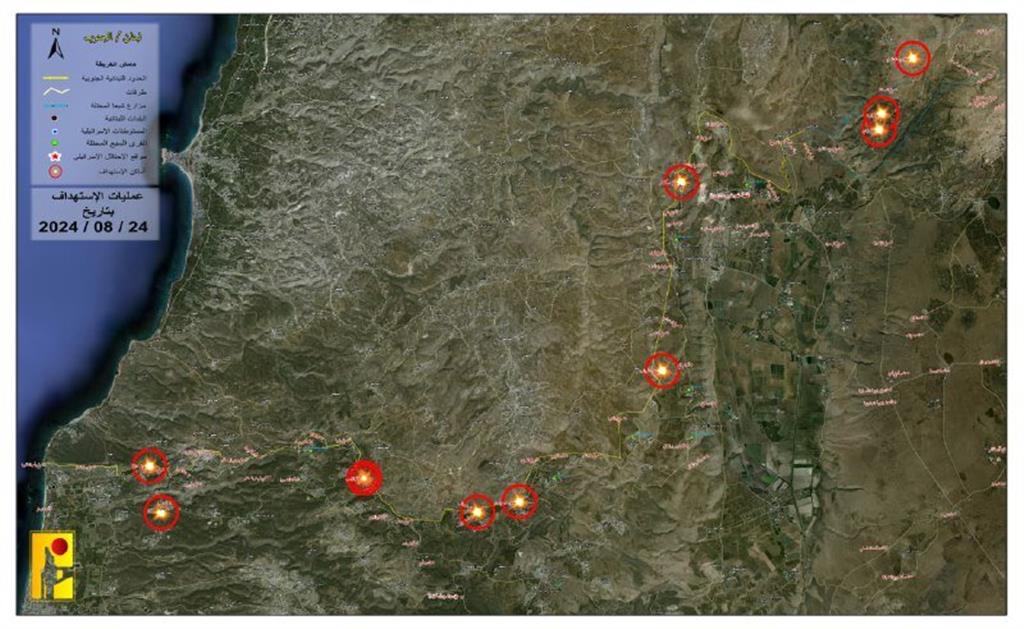 Beirut, 24 ago (Prensa Latina) La Resistencia de Líbano (Hizbulah) ejecutó hoy 12 ataques contra posiciones israelíes, en respuesta a las agresiones en el sur del país y como parte del frente de apoyo al pueblo de Gaza.