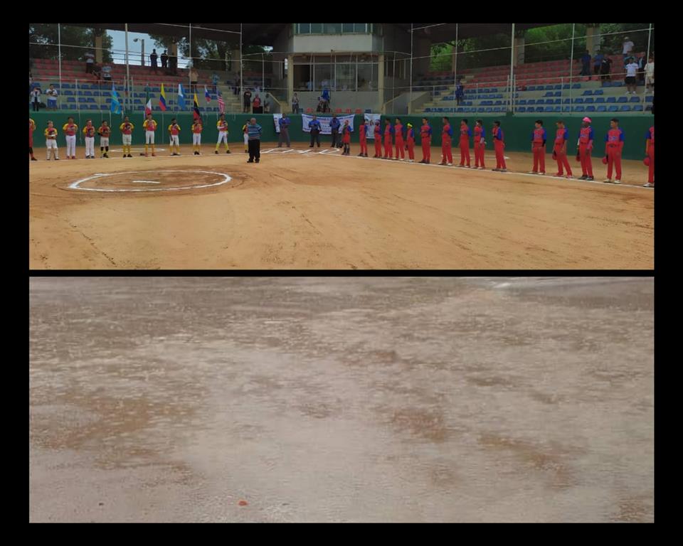 Con amenaza constante de precipitaciones sobre la capital, cuando al fin los muchachos salieron al terreno casi una hora después del horario fijado, el tiempo apenas alcanzó para escuchar el Himno Nacional de ambos países y el saludo habitual entre los peloteritos, en el estadio de softbol número 1 del Centro Olímpico Juan Pablo Duarte.