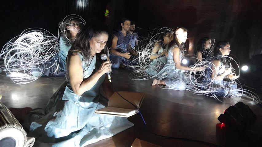 Aditi Mangaldas, la directora del grupo, protagonizó la pieza, la cual de manera dinámica incorporó la propuesta del escultor Manish Kansara de una instalación artística con cables.