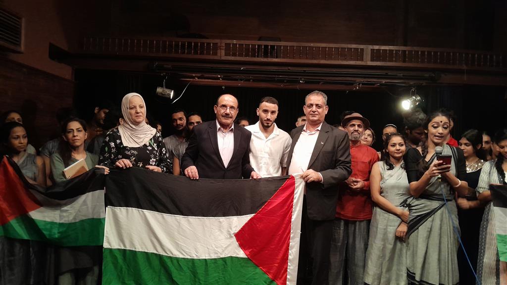 Al final de la función, el embajador palestino agradeció la solidaridad de los artistas indios con su pueblo y su denuncia al barbarismo al que son sometidos los habitantes del territorio ocupado por Israel.