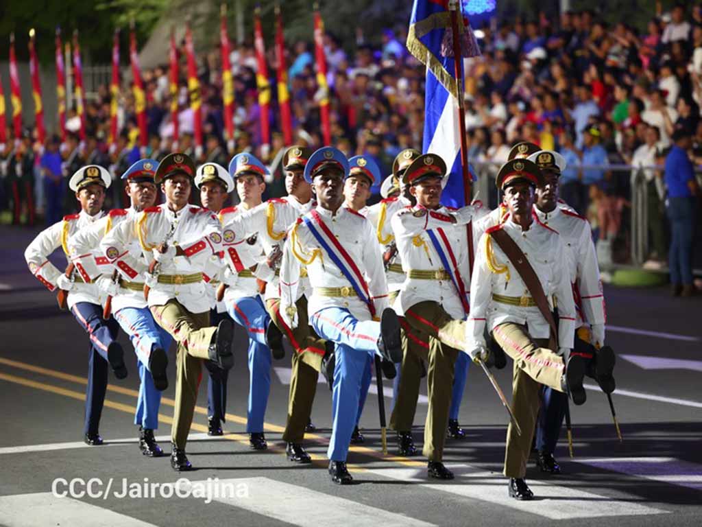 En el desfile, que contó con la presencia del presidente Daniel Ortega, la vicemandataria Rosario Murillo, el comandante en jefe del Ejército, Julio César Avilés, entre otros invitados especiales, también participaron pelotones de las Fuerzas Armadas de China, Rusia, Honduras y México.