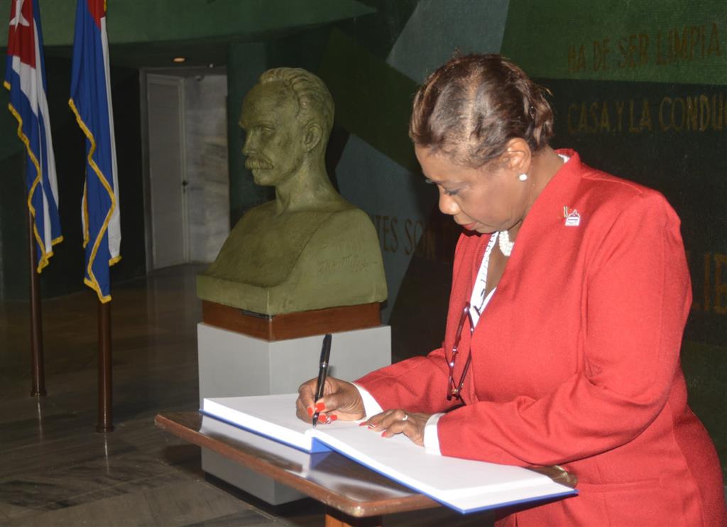 Así lo escribió la parlamentaria en el libro de invitados al monumento dedicado el Apóstol cubano en esta capital a donde acudió, junto a su delegación y en compañía de la vicepresidenta de la Asamblea Nacional del Poder Popular (ANPP, parlamento), Ana Mari Machado.