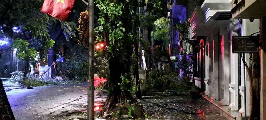 El centro de la tormenta entró en tierra firme vietnamita alrededor de las 14:00 (hora local) y traía fuertes vientos de nivel 14, que alcanzan una velocidad máxima de 166 km/h, y ráfagas de nivel 17 (de hasta 220 km/hora), que comenzaron a debilitarse a medida que avanzaba con rumbo oeste.