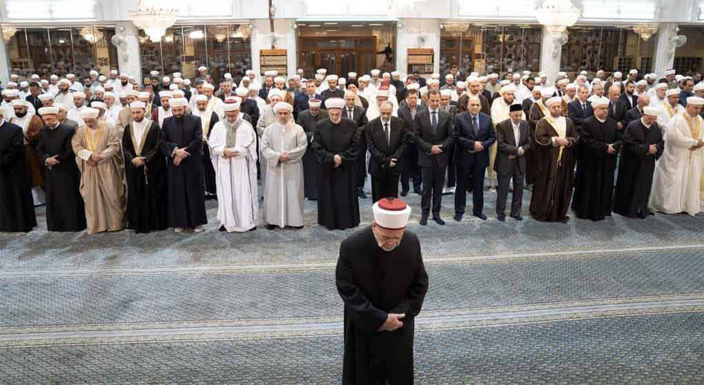 El presidente Bashar Al-Assad participó en una de las ceremonias organizadas por el Ministerio de Asuntos Religiosos (Awqaf) en la mezquita de Saad bin Moaz, en Damasco.