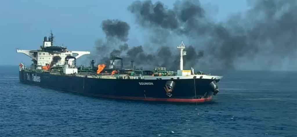 La misión informó la víspera, en su cuenta oficial de X, que los remolcadores fueron conectados con éxito al MV Sounion y divulgó imágenes de la operación en la que se puede divisar al buque en llamas, escoltado barcos de guerra.