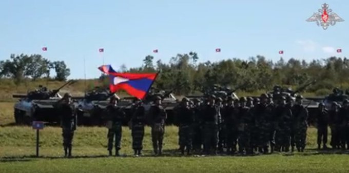 En el campo de instrucción fueron izadas las banderas de Rusia y Laos, así como la del ejercicio conjunto, y se interpretaron los himnos nacionales.