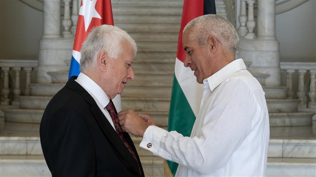 La distinción reconoce la contribución de Mohammad Samhan al fortalecimiento y consolidación de los históricos lazos de amistad y solidaridad entre Palestina y Cuba.