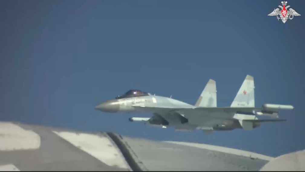 Ambos aviones realizaron un vuelo previsto de más de 11 horas y estuvieron acompañados por cazas Su-35S y Su-30SM.