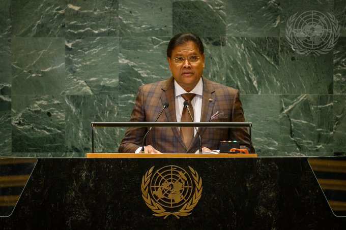 Al intervenir en el 79 período de sesiones de la Asamblea General de las Naciones Unidas, el presidente de Surinam, Chandrikapersad Santokhi, pidió el cese de tal política e instó a fomentar la colaboración y fortalecer las alianzas para abordar los problemas globales.